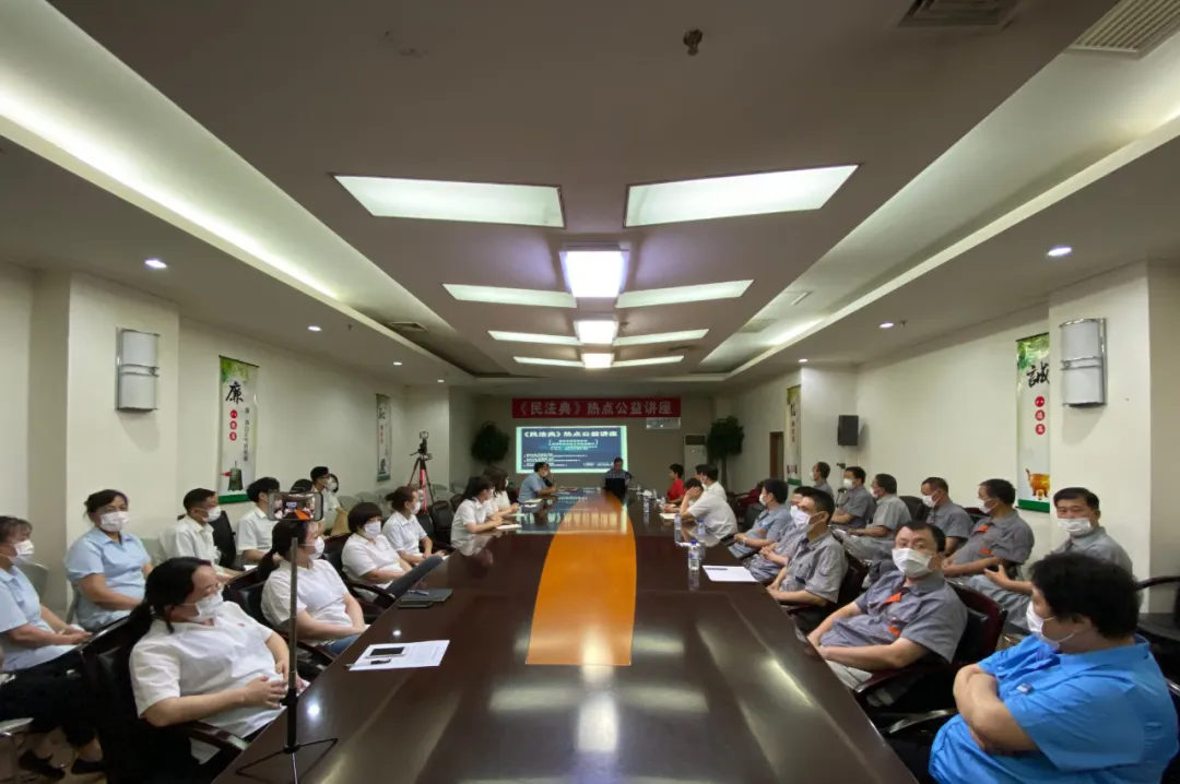7月8日下午,大连报业物业管理有限公司邀请北京市盈科(大连)律师事务所(以下简称“盈科大连分所”)的王金海、刘春莹、迟瑞堂、郝云律师来到公司8楼多功能会议室,为物业服务人员宣讲民法典,讲座还通过网络直播的方式供报业集团其他职工线上学习。